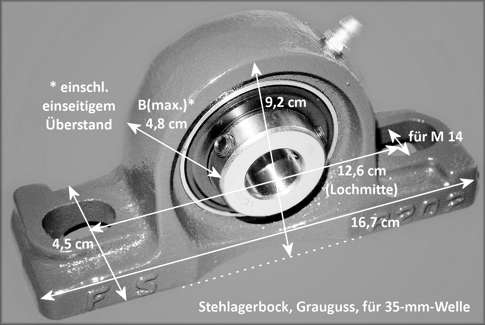 Diese sogenannten "Stehlager" haben ein sehr stabiles Gussgehäuse und bereits eingesetzte, abgedichtete Kugellager,